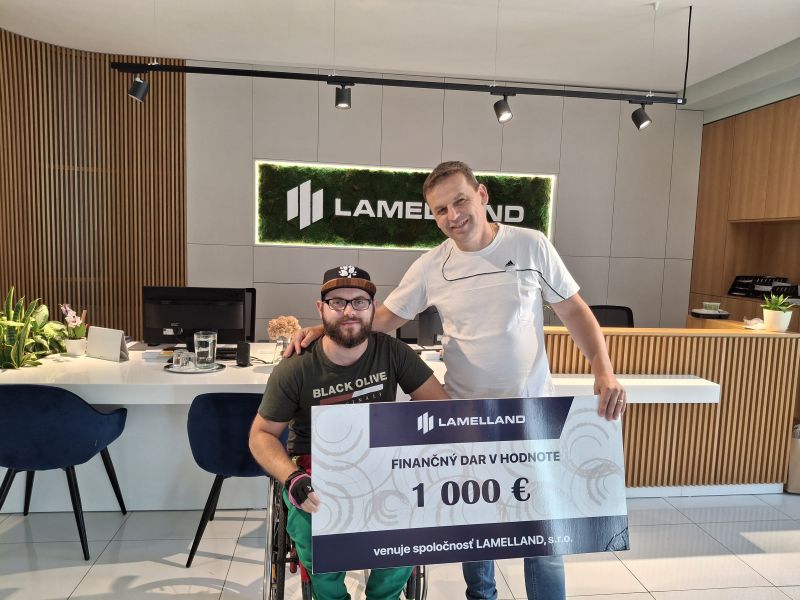 Dnes sme mali tú česť odovzdať finančný dar vo výške 1 000 € mladému mužovi, ktorý po vážnej nehode zostal odkázaný na invalidný vozík.